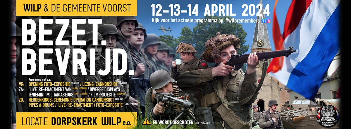 Canadese en Duitse ‘living history’-groepen zijn zaterdag en zondag van 09:00 tot 17:00 uur zowel in ‘het veld’ te bewonderen als met statische display’s in en om de Dorpskerk van Wilp.