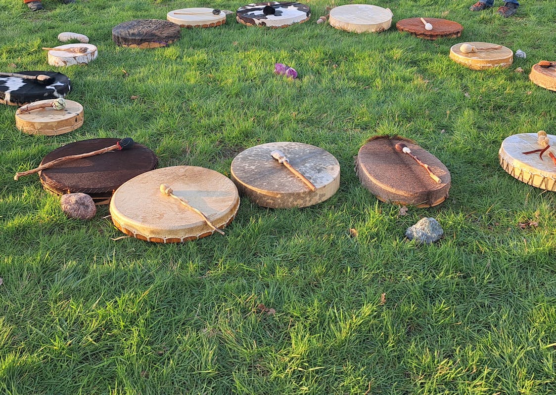 Het drummen verbindt ons met onszelf, onze binnenwereld en we maken ons vaak zonder dat we er bewust van zijn verbinding met Moeder Aarde, de Oerbron, Voorouders, elkaar en de buitenwereld. Middels de drum, het hout van een boom en de huid van een dier is er ook verbinding met de spirits/natuurwezens van de planten- en dierenwereld, de windstreken, aarde, water, vuur, lucht, ether en klank. Daarbij behoren ook de cycli van de seizoenen in de natuur, het leven zelf.