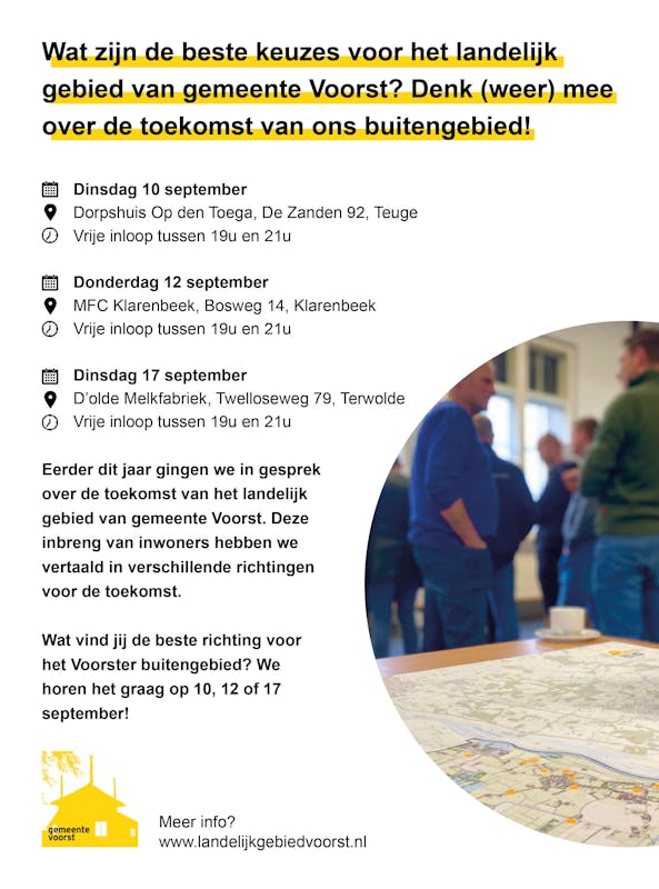 Wat zijn de beste keuzes voor het landelijk gebied? Wat vind jij de beste richting voor het Voorster buitengebied? Denk (weer) mee tijdens een van onze avonden. We horen het graag!