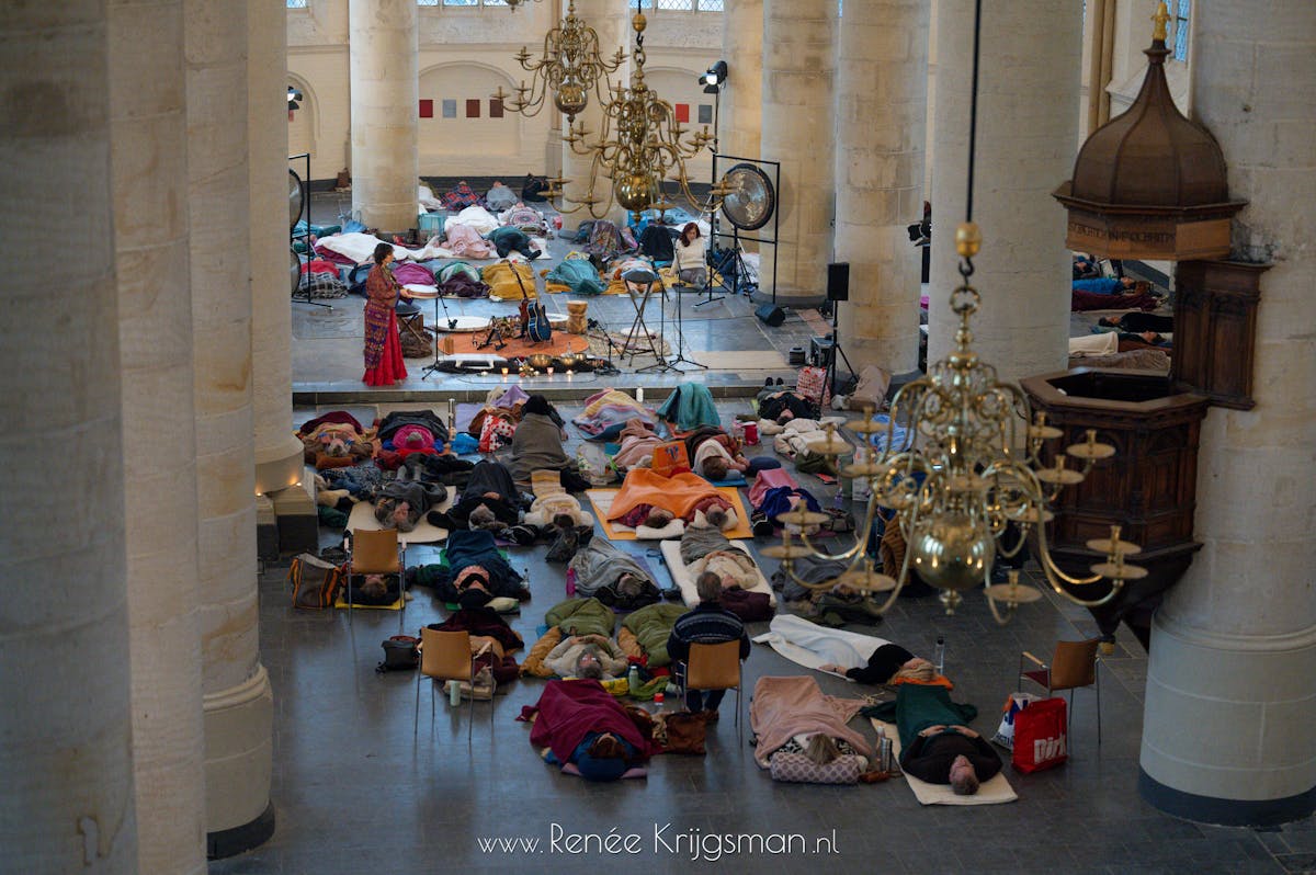 De Bergkerk heeft vloerverwarming, dus kom relaxed liggen op een yogamatje o.d. en maak het jezelf comfortabel met een fijne sjaal, een deken, warme sokken en andere dingen die jou helpen om gedurende anderhalf uur een ontspannen reis te maken in overgave.