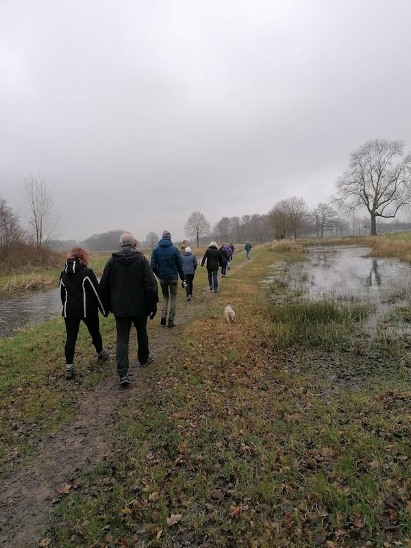 Start van de wandeling (van ca. 6 km met een optie van ca. 3,5 km) om 13.30 uur.