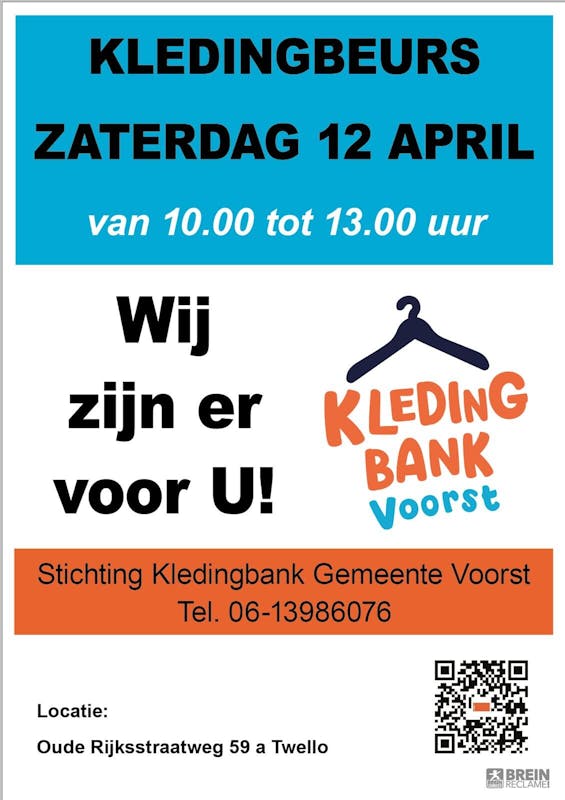 Op 12 april houdt de Kledingbank een kledingbeurs. Het teveel aan kleding zal voor een klein prijsje worden verkocht. De kledingbeurs is op zaterdag 12 april van 10.00 tot 13.00 uur in het gebouw van de Kledingbank Voorst aan de Rijksstraatweg 59a in Twello.