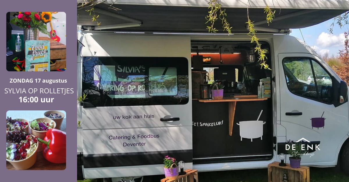 bij Strandhuys de Enk. Met haar foodbus komt "Sylvia op rolletjes" ter plekke heerlijke gerechten bereiden zodat er ook s'avonds gegeten kan worden bij de Enk. Strijk neer op ons terras of neem het mee naar het strand om te genieten van alle vers bereide producten.