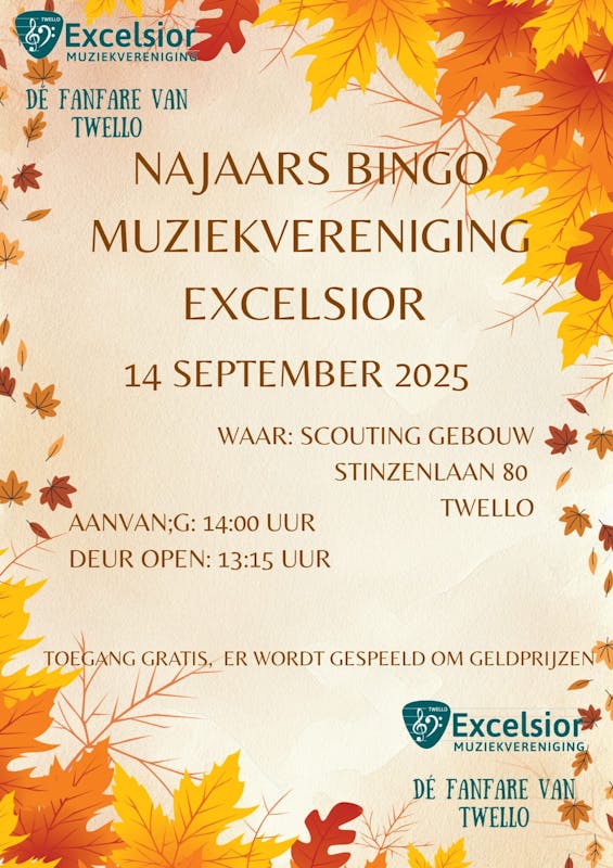 Zondag 14 september zal er weer een bingo worden georganiseerd door muziekvereniging Excelsior. Er zal gespeeld worden om geldprijzen.