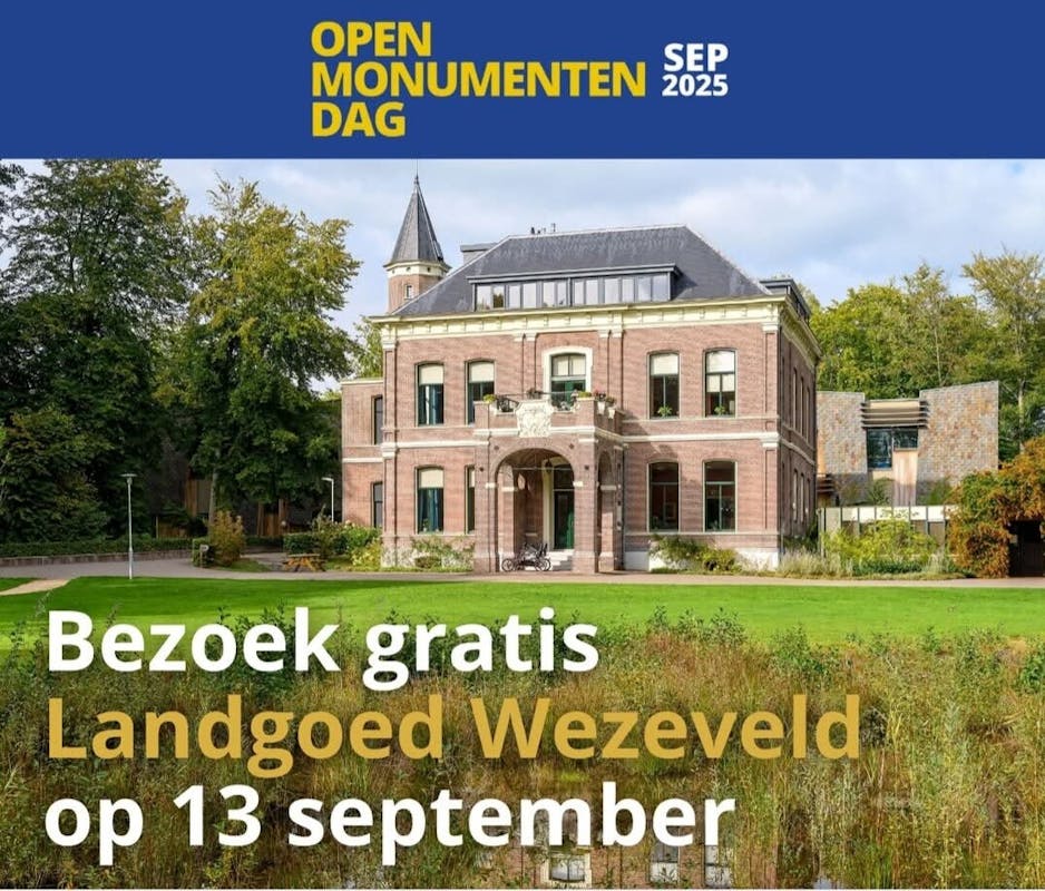 Open Monumentendag zaterdag 13 september van 11.00 tot 17.00 uur. Bezoek gratis Landgoed Wezeveld.