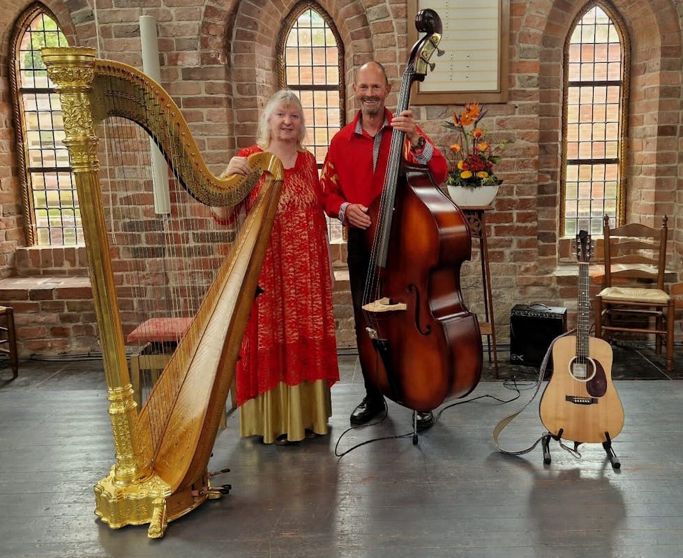 Over de musici:Regina Ederveen is een gerenommeerde harpiste met optredens tot in Carnegie Hall (New York) en diverse cd-uitgaven op haar naam. Rein de Vries is een veelzijdig muzikant en zanger met een passie voor gitaar, bas en contrabas. Samen zorgen zij voor een unieke muzikale beleving.