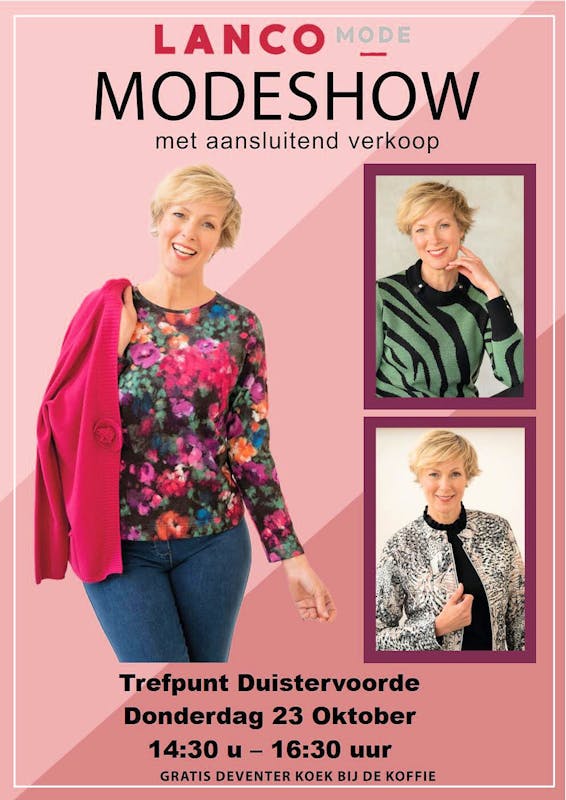 Vanaf 14.30 uur rollen de modellen van Lanco Mode stijlvol en soepel over de vloer alsof ze net uit een Vogue-shoot zijn geplukt. Verwacht flair, finesse en misschien zelfs een ondeugende knipoog van een mannequin die haar hakken nét iets te enthousiast showt.