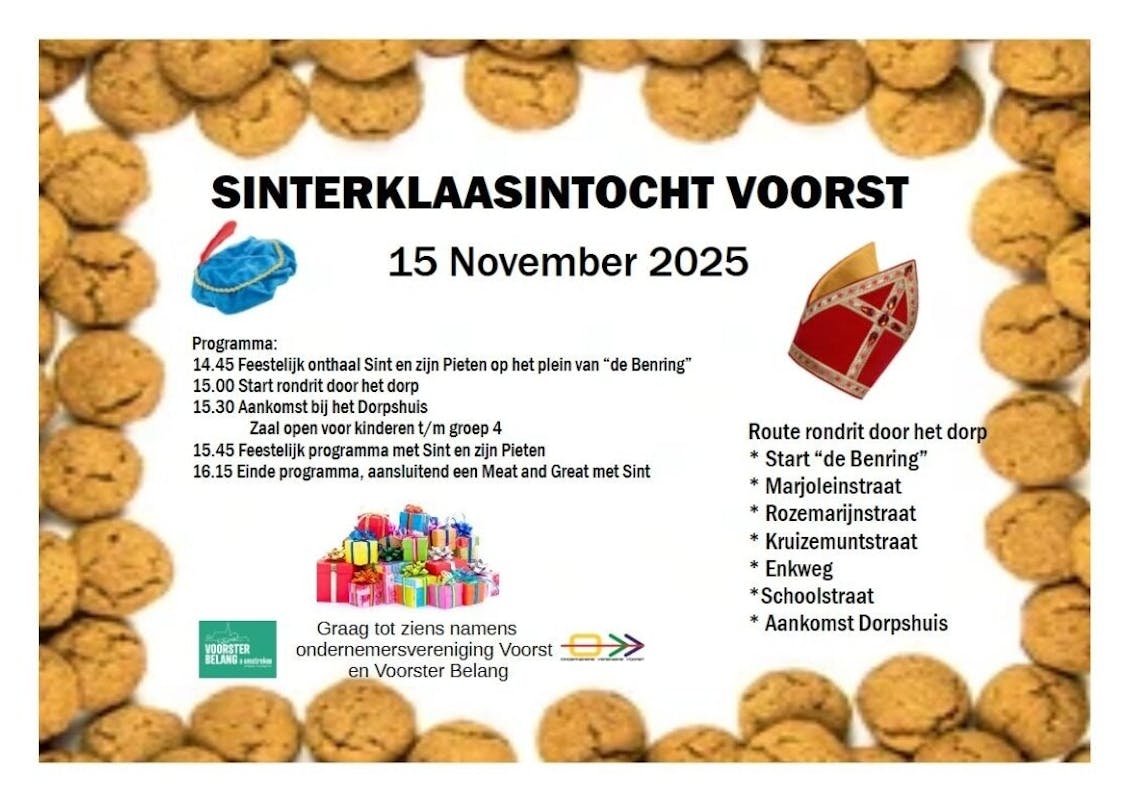 Op zaterdag 15 november 2025 komt Sinterklaas weer naar Nederland. 's Middags komt hij in Voorst met zijn pieten.