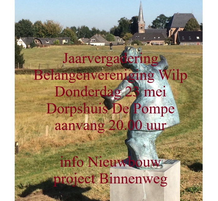 De Belangenvereniging Wilp e.o houdt op donderdag 23 mei a.s. haar jaarvergadering in Dorpshuis De Pompe te Wilp.