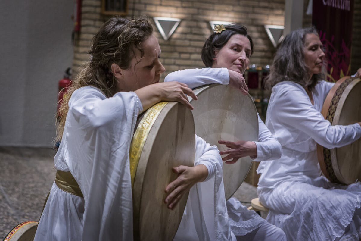 Saffraan ritueel drumtheater wordt gevormd door drie bevlogen vrouwen. Barbara Loen, Sahaja Pragt en Irmgard Cottaar vinden elkaar in hun passie voor ritme, klank, bewegen en rituelen. Geïnspireerd door de magische klanken van de framedrums delen zij hun passie met hun publiek. Framedrums behoren tot de oudste instrumenten op aarde. De eerste religies – natuurreligies – ontwikkelden zich rond de beat van de drum. Het waren vrouwen die al drummend voorgingen in deze ceremonieën, als hoedsters van harmonie en draagsters van leven. De trilling van de drum resoneert met de hartslag en brengt je in contact met je eigen levensritme. Saffraan neemt haar publiek mee op een magische, ritmische reis. Deze voert langs moderne arrangementen, traditionele Mediterrane ritmes en oeroude Oosterse klanken.