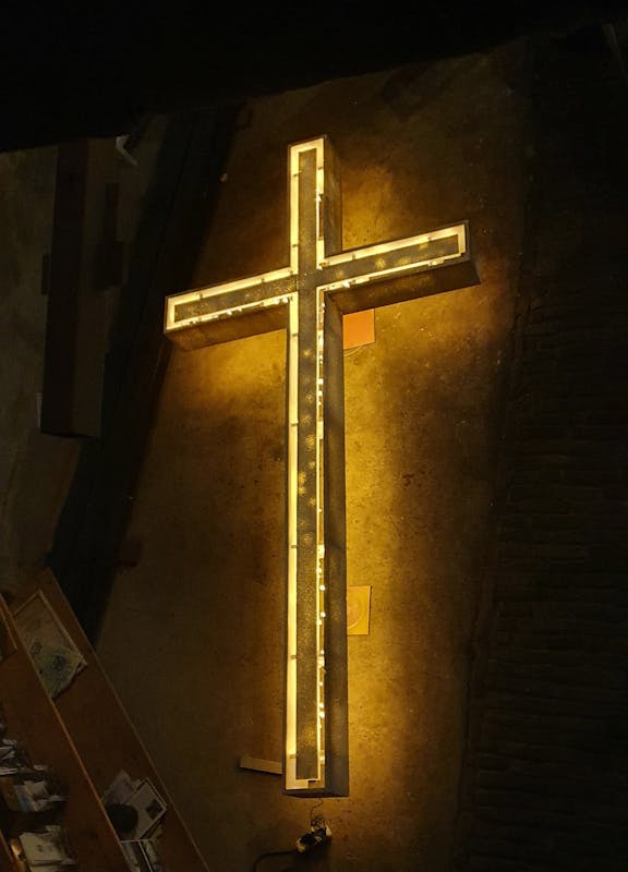 Geïnspireerd door het kruis van ‘The Passion’ is door enthousiaste mensen van de Protestantse Gemeente Klarenbeek, Voorst en Wilp een drie meter lang lichtgevend kruis gemaakt. Op zaterdag 16 april, de dag voor Pasen, is dat kruis te zien in alle drie de kerkgebouwen van de Protestantse Gemeente.