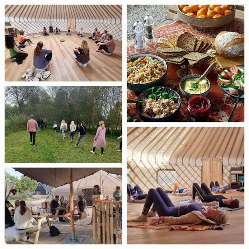 Onze gastyogi neemt je mee in de flow. En of je nu beginnend of gevorderd bent, die neerwaartse hond of cobra doe jij lekker op jouw tempo en niveau. Onze yurt midden in de natuur is al een beleving op zich en geeft de zondag kleur! Na de les staat er een heerlijke lunch klaar met diverse hapjes. Nagenietend wandelen we kort de stilte in en sluiten de dag ritueel af.