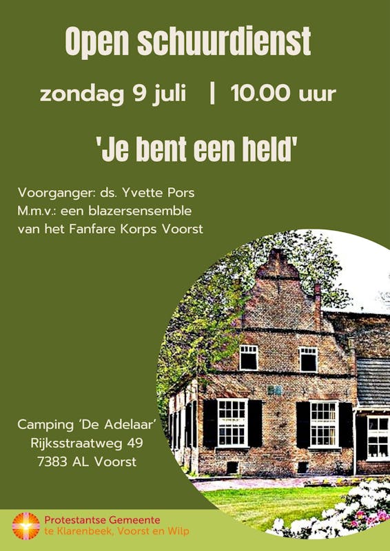 Een kerkdienst in een schuur, dat wil je meemaken! In de speel- en koeienschuur van Camping De Adelaar is plek voor velen, van jong tot iets minder jong. Natuurlijk zorgen we voor voldoende (comfortabele) zitplaatsen!