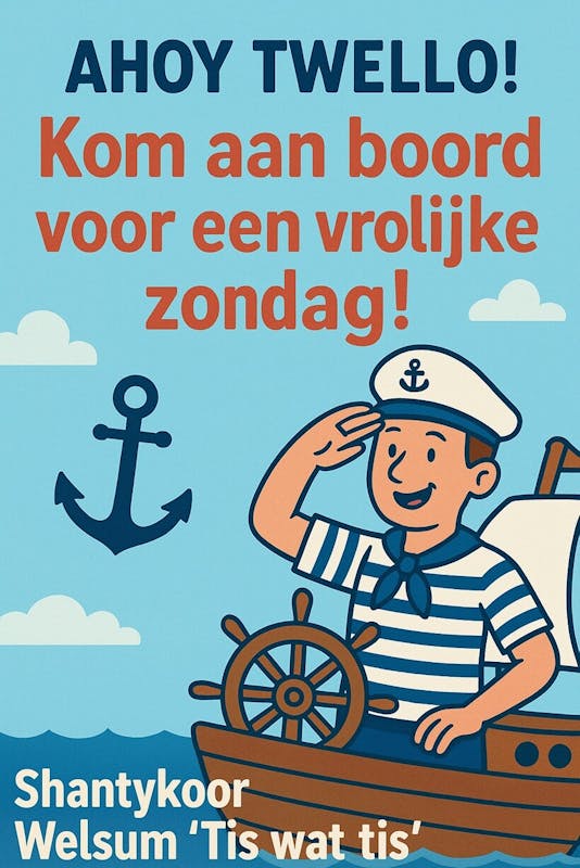 Zet je scheepspet op en smeer de kelen, want op zondag 23 november meert Shantykoor Welsum ‘Tis wat tis’ aan bij Trefpunt Duistervoorde! Twintig enthousiaste Welsummers – mannen én vrouwen – zingen de sterren van de hemel met vrolijke zeemansliederen en andere bekende meezingers. Het repertoire is Engels en Nederlandstalig