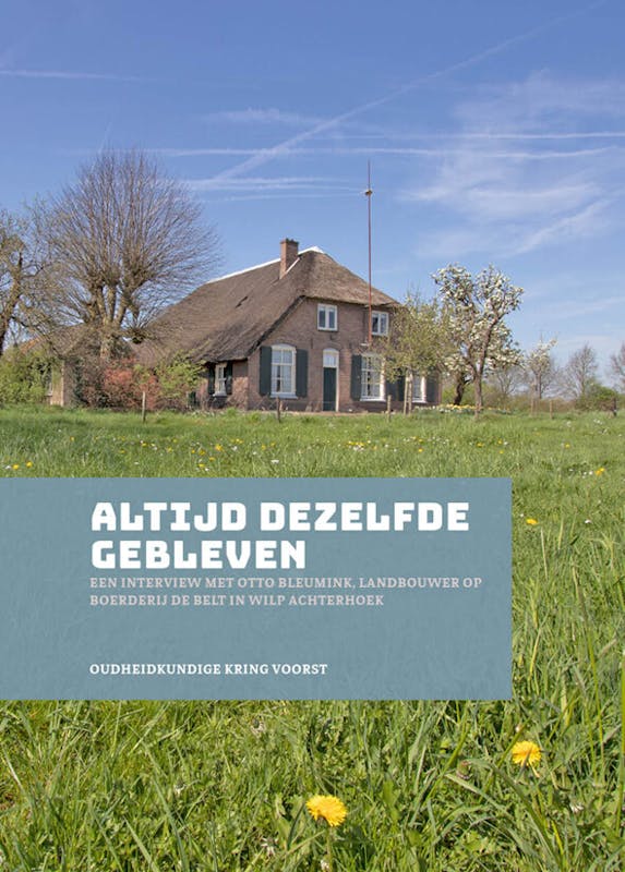 Voorjaar 2018 zijn door de OKV voor het Voorst 200-weekend Bussloo, Posterenk en Wilp Achterhoek een aantal bewoners uit deze drie dorpskernen geinterviewd. Delen van de interviews zijn in de film ‘Verhalen uit het groene hart’ terechtgekomen, die in het weekend van 25 mei 2018 werd vertoond. Maar er was nog veel mooi materiaal over. Het meest uitgebreide verhaal was van Otto Bleumink, landbouwer op boerderij De Belt in Wilp Achterhoek. In het Voorst 200-weekend hadden we een excursie naar zijn boerderij onder leiding van Wim Jansen van Stichting IJsselhoeven. Elsbeth Volker van de OKV is naderhand nog een paar keer op bezoek geweest bij Otto, en er volgden nog meer mooie verhalen over de Holthoeven, het bedrijven van landbouw en het verwerken van voedsel in vroeger tijden, het leven op en rond boerderij De Belt en de middenstand in Wilp Achterhoek. Het is een mooi boekje geworden van 36 pagina’s, vol foto’s uit het archief van Otto Bluemink, naast recente foto’s van boerderij de Belt en het erf rondom.