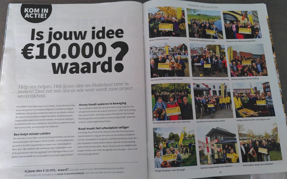 Heb jij ook een idee waarmee je Nederland verkeersveiliger, mobieler of toegankelijker maakt? Of zit je met een uitdaging met betrekking tot het doorvoeren van de corona-maatregelen binnen deze drie thema's? Doe dan mee met de campagne ‘ANWB Fonds helpt je op weg’. ANWB Fonds steunt 12 projecten –1 per provincie- met een financiële bijdrage van maximaal € 10.000 zodat jouw plan werkelijkheid kan worden! Aanmelden kan tot en met 5 oktober.