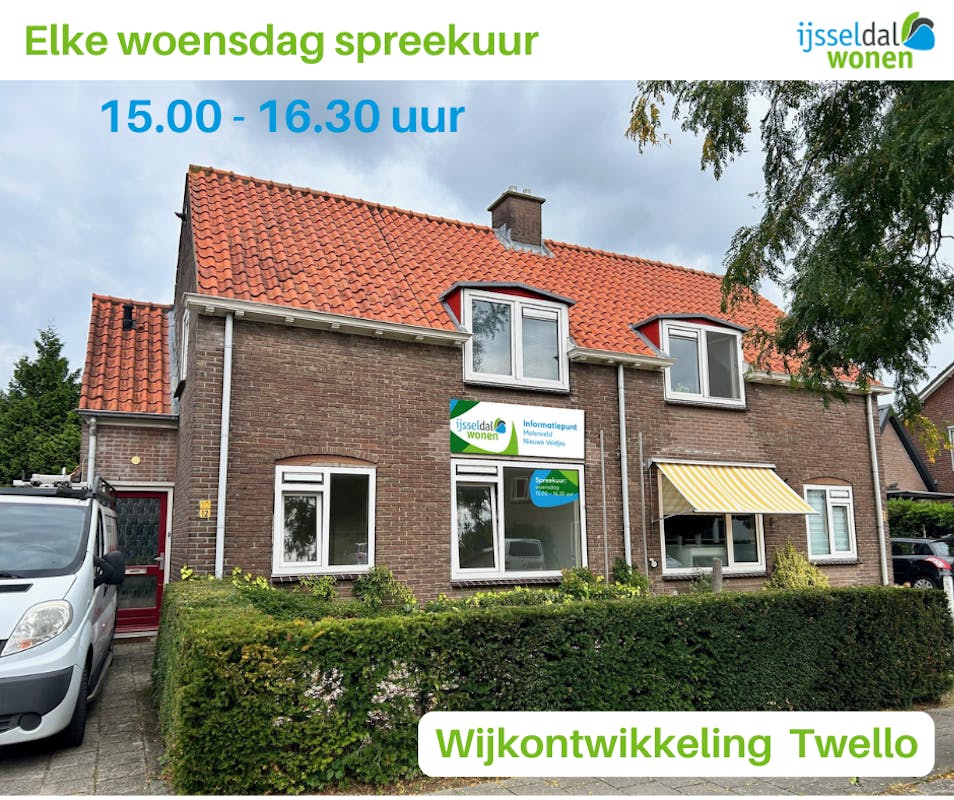 Al eerder berichtten wij over de herontwikkeling van de wijk Molenveld en Nieuwe Veldjes in Twello. Het omvat zowel sloop en nieuwbouw als woningverbetering. In totaal worden 65 woningen gesloopt om ruimte te maken voor 108 nieuwbouwwoningen, 43 woningen maken we energiezuiniger en comfortabeler. IJsseldal Wonen hecht veel waarde aan de begeleiding en betrokkenheid van bewoners tijdens het traject. Om deze betrokkenheid te waarborgen, is er in november 2023 een klankbordgroep opgericht. In deze groep, bestaande uit bewoners van 16 verschillende adressen, wordt actief meegedacht over de organisatie van de wijkontwikkeling en de behoeften in de wijk. Bewoners zijn tijdens een speciale bewonersavond geïnformeerd over de plannen voor hun woning. Ze hebben daarnaast een uitgebreide brochure ontvangen waarin het vervolgproces wordt toegelicht. We zijn nu bezig met huisbezoeken, waarbij we specifiek ingegaan op de persoonlijke situatie. Bovendien hebben we in de wijk een informatiepunt ingericht op Molenveld 12, waar bewoners en omwonenden wekelijks terechtkunnen met vragen tijdens het spreekuur. We bieden hiermee een laagdrempelig contactpunt voor iedereen die betrokken is bij de wijkontwikkeling. “Persoonlijke aandacht en goede begeleiding vormen de kern van onze aanpak”, zegt Koen Boersen, projectontwikkelaar bij IJsseldal Wonen.