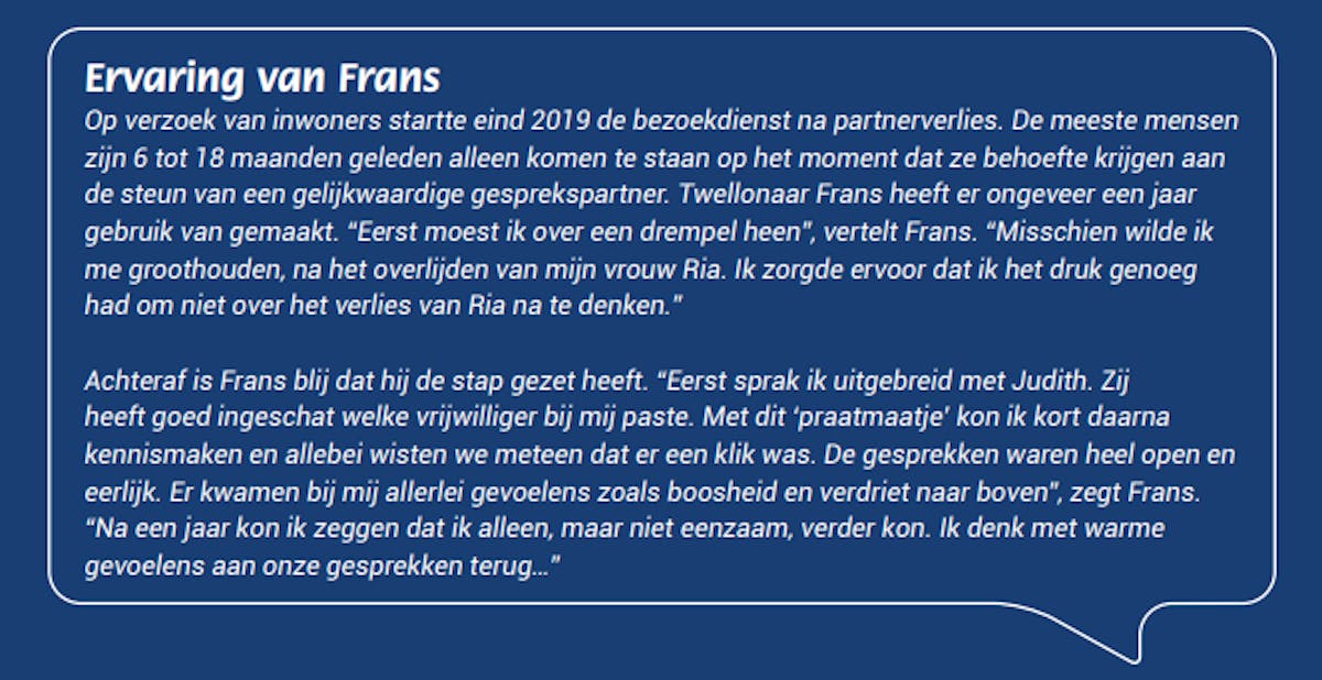 TIP: Klik op de afbeelding 'Ervaring van Frans' om de ervaring van een inwoner te lezen!