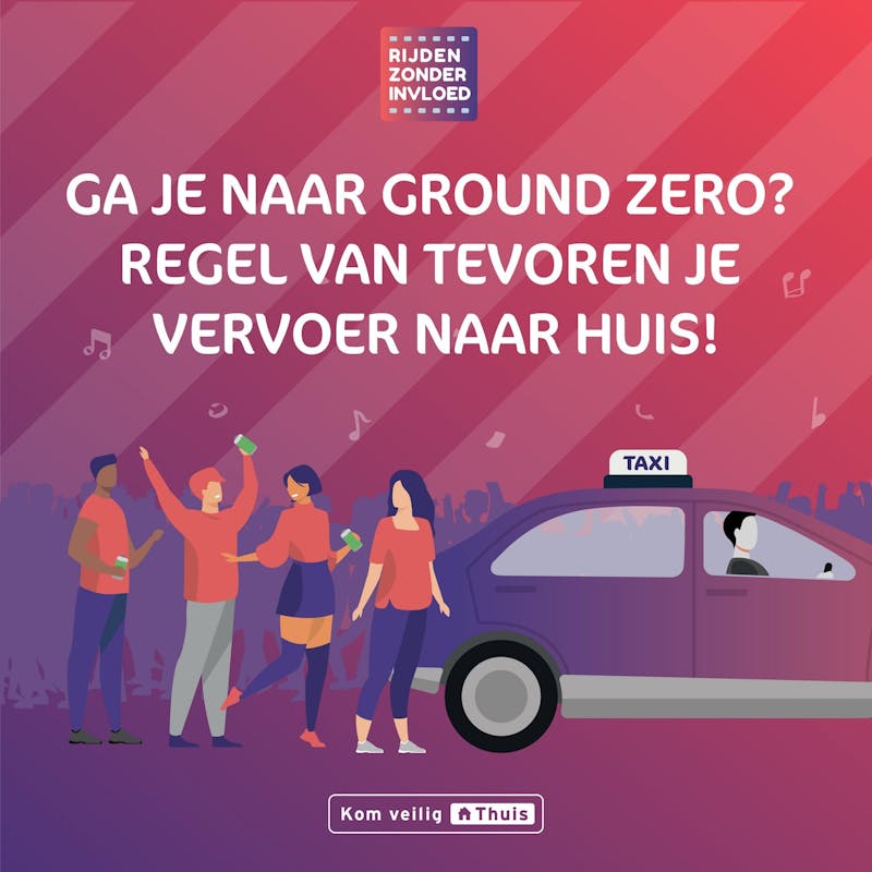 Een festival is een plek waar wel eens een alcoholisch drankje geschonken wordt, of drugs wordt gebruikt. Ga je naar Ground Zero en wil je alcohol drinken of drugs gebruiken? Bedenk dan vooraf hoe je thuiskomt. Dat is de belangrijkste boodschap van het campagneteam en de organisatie. Het drinken van één glas alcohol vertraagt namelijk al je reactiesnelheid, en versmalt je blikveld. Wanneer je 4 à 5 glazen alcohol hebt gedronken wordt de kans op een ongeval zelfs 4 keer zo groot. Ook drugs en verkeer zijn een slechte combinatie. XTC zorgt er bijvoorbeeld voor dat je risico’s slechter inschat, en het is onder invloed van XTC lastiger om je aandacht bij het verkeer te houden. Daarom wil het BOB-campagneteam samen met Ground Zero bewustwording creëren bij de bezoekers.