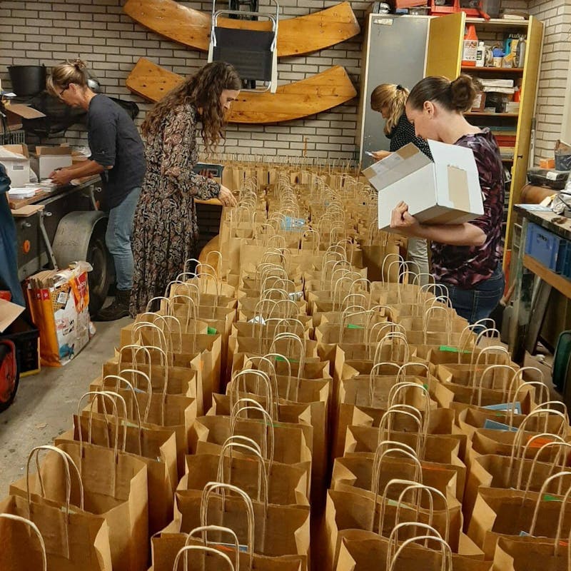 sommige mensen voelde toch nog wat schroom en zijn desondanks toch een tasje komen halen, er waren er immers meer dan 200 gemaakt. en allemaal zijn deze uitgedeeld aan Posterenkers en buren.