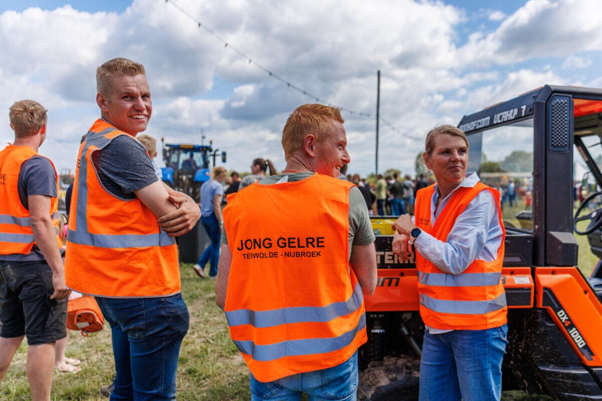 Al sinds jaar en dag wordt dit evenement georganiseerd, meestal in april rond Koningsdag en soms wat later in mei. Afgelopen jaar kon het festijn helemaal niet doorgaan; de kleibaan voor de trekkers was spekglad door het kletsnatte voorjaar. Dit jaar is de situatie omgekeerd, het is al weken heel droog. Voor de baan is dat geen probleem, vertelt Teun Keizer (35) van Jong Gelre (de vereniging voor plattelandsjongeren) Terwolde Nijbroek. Op de vraag of hij voorzitter is van de Trekkertrek-commissie van de plaatselijke Jong Gelre afdeling komt niet een heel duidelijk antwoord. Ze doen de Trekkertrek met elkaar en de rollen zijn niet duidelijk. Zijn inzet is breed en groot, eigenlijk vertegenwoordigt Teun meerdere bestuursfuncties in 1 persoon. Hij beheert de penningen en het secretariaat en de inschrijvingen van de deelnemers. ‘Voor de technische kant van de Trekkertrek zijn er genoeg andere vrijwilligers, die veel beter zijn in dat onderdeel’, vertelt Teun. Samen maken ze er een gezellig en goed geolied evenement van. Zo houdt Rudi Veenendaal zich bezig met de planning van de vrijwilligers en rijdt hij rond met drankjes voor de vrijwilligers. Om ervoor te zorgen dat de energie op peil blijft op zo’n warme dag.