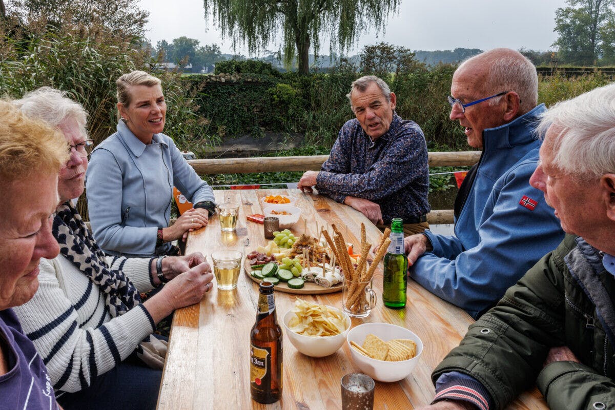 Dat de gemeenschap van Bussloo niet voor één gat te vangen is, blijkt wel weer op de ochtend van Burendag. Het verkeer wordt geregeld zodat er ruimte is voor een gepast en waardig afscheid van oud-pastor De Jong. Even verderop in het dorp wordt bij de familie de Haan spontaan ruimte gemaakt om ’s middags Burendag door te laten gaan. Als ik het dorp in fiets, word ik opgewacht door de lokale jeugd die me enthousiast verder leidt naar de tuin en het tuinhuis van familie de Haan. De tafels staan vol lekkernijen en jong en oud hebben zich verzameld. Voor het klussen is een lijst gemaakt. En mocht je niet zo’n klusser zijn, dan is het ook gezellig als je komt aanmoedigen. Of schrijven, zoals ik doe voor het redactieteam van de vrijwilligerscentrale Voorst. Mariëtte ten Hove deelt de kluslijst uit en binnen de kortste keren zijn de taken verdeeld: snoeien, afval rapen, bladblazen en een bankje maken op het kerkplein, om maar wat te noemen. Geboren en getogen Busslosenaar Dennis Dijkhof draait zijn hand er niet voor om. Als directeur van een koninklijk onderscheiden bouwbedrijf is het maken van een boombankje een kolfje naar zijn hand. En hij hoeft het niet alleen te doen, samen klussen is leuker en sneller dan alleen.