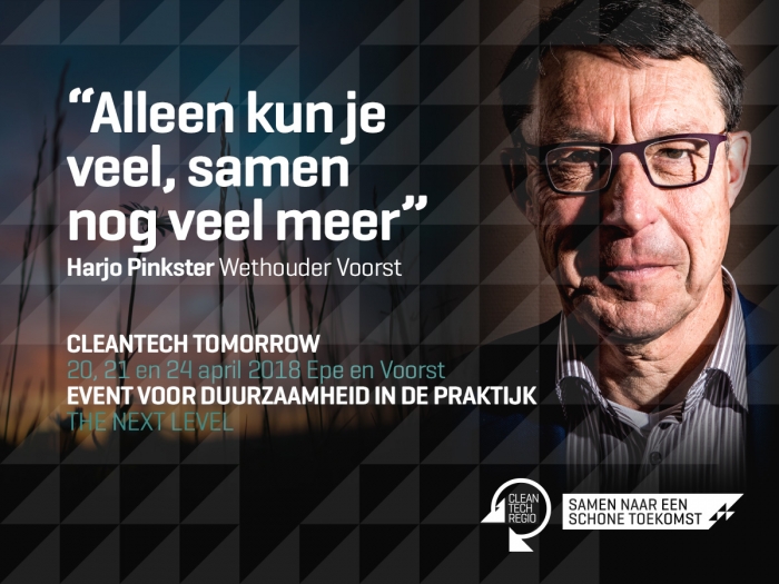 Op 20, 21 en 24 april organiseren de gemeenten Epe en Voorst samen met de Cleantech Regio het Cleantech Tomorrow Event. Verdeeld over deze dagen is een interessant en leuk programma samengesteld voor jong en oud. In de aanloop naar het Cleantech Tomorrow event maakt de Cleantech Regio een aantal uitzendingen onder de naam ‘Cleantech Regio TV’ mogelijk. De uitzending die geheel in het teken van de gemeente Voorst staat is te bekijken op www.cleantechtomorrow.nl .