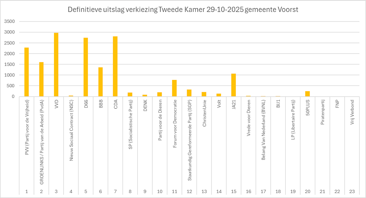 In de Gemeente Voorst heeft 85,21% van het totaal aantal kiesgerechtigden gestemd. De definitieve uitslag is bekend: de VVD is in onze gemeente de grootste partij geworden.