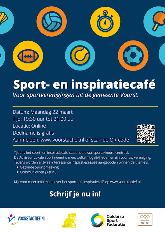 Deelnemers kunnen zich vanaf heden aanmelden via onze website (klik hier). Op deze pagina vindt u tevens meer nieuws over het lokale sport- en beweegakkoord. Deelname aan het ‘sport- en inspiratiecafé’ is gratis. Voor overige vragen kunt u contact opnemen met de regiegroep via .