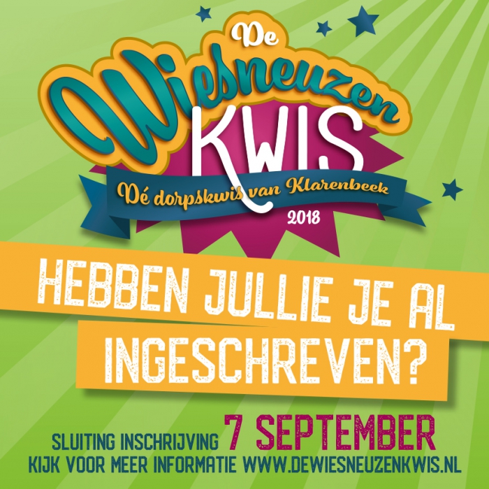Heb jij je al ingeschreven? Je hebt tot 7 september! En blok natuurlijk 21 september (dé kwisavond) en 12 oktober (dé feestavond) in je agenda!