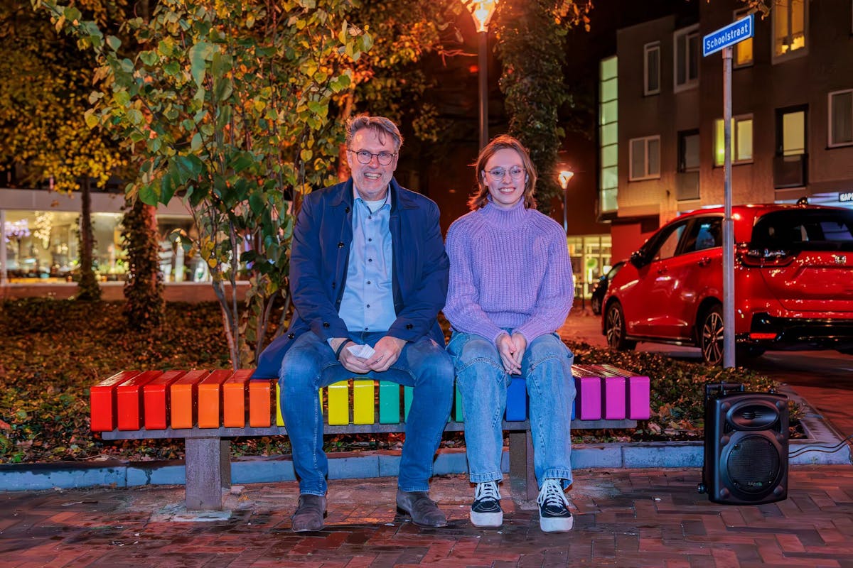 Roos is 14 jaar, inwoner van Twello en leerlinge van het Zone.college. En Roos heeft een belangrijke boodschap: ook in de gemeente Voorst mag iedereen zijn wie die is. Samen met andere leerlingen en docenten is Roos met de Gender & Sexuality Alliance (GSA) actief om gelijkheid en respect voor elkaar uit te dragen. Roos vroeg om een fysieke plek op straat waar iedereen die dat wil hierover met elkaar in gesprek kan gaan. Die plek is nu het regenboogbankje dat liefde, vrijheid, geluk, vrede en een warm welkom uitstraalt. Waarden met betekenis die niet altijd vanzelfsprekend zijn.