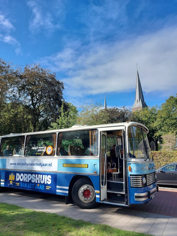Uitgezwaaid door gedeputeerde Peter van ’t Hoog gingen de ‘beheerders’ van de genomineerde dorpshuizen uit Gelderland twee dagen lang in een oldtimerbus elkaars ontmoetingsplek langs. Om koffie en sfeer te proeven, kritisch naar de hygiëne te kijken en een indruk te krijgen van de activiteiten.