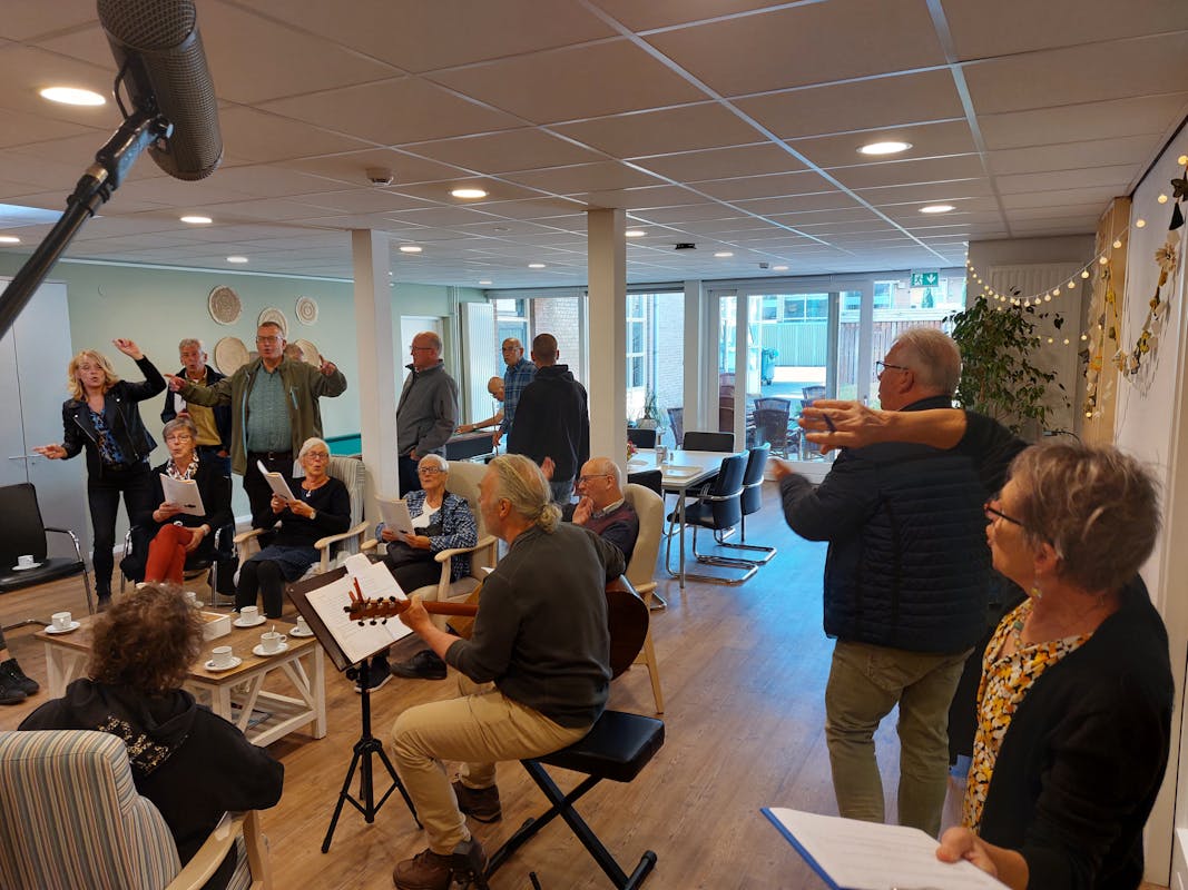 Maandagochtend vroeg, maar al een bruisende boel. Vóór de ontmoetingsplek aan het Sint Maartenserf waren de jeu de boulers een balletje aan het gooien, binnen rolden de koersbalballen en de biljartballen, zaten de vaste koffiedrinkers gezellig te keuvelen en uit de achterste zaal klonk gitaarmuziek en gezang.
