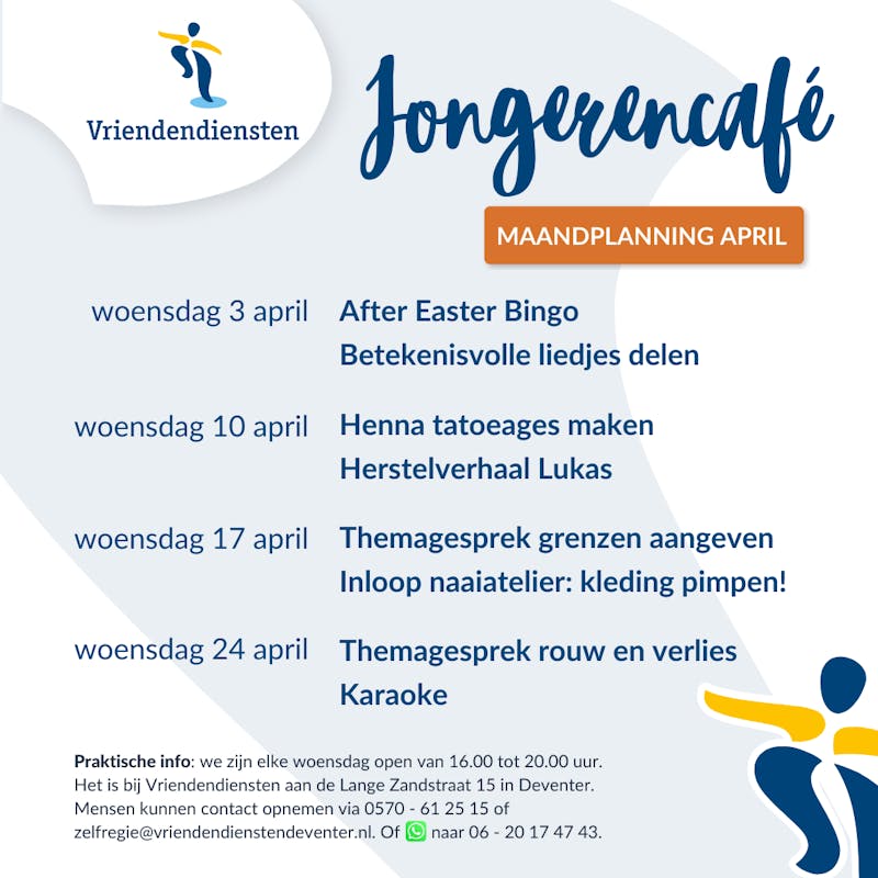 Voel jij je soms niet begrepen? En heb je behoefte aan contact met leeftijdsgenoten die ook (mentale) moeilijkheden in het leven ervaren? Ben je op zoek naar een plek waar je van waarde kan zijn? En wil jij jouw ervaring leren inzetten? Dan is het jongeren café misschien iets voor jou! Kom je ook?