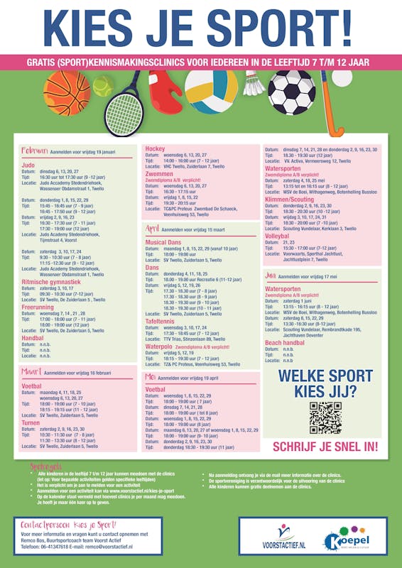 Meer informatie over Kies je Sport! is te vinden op deze website. Voor vragen kan je contact opnemen met buurtsportcoach Remco Bos via of 06-41347618.