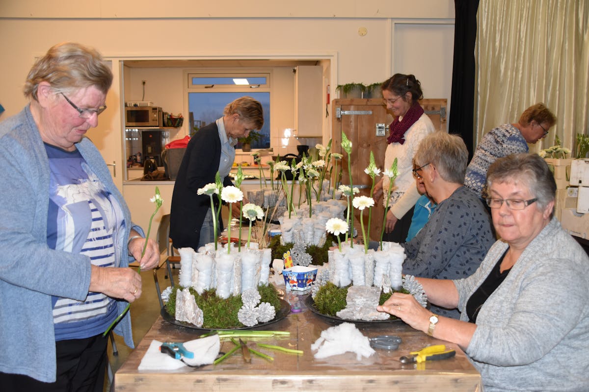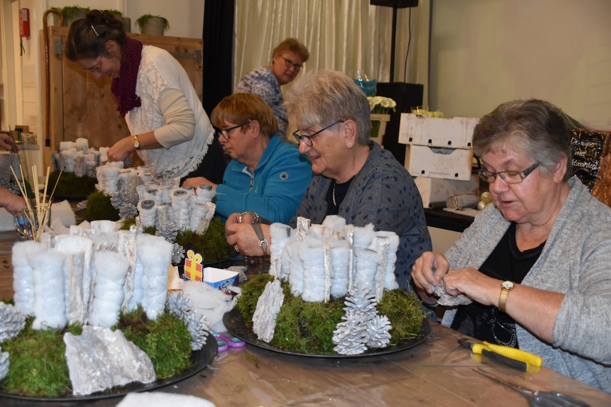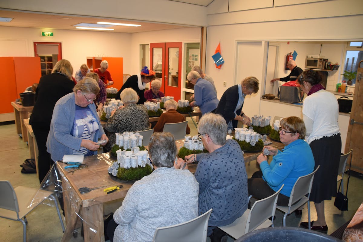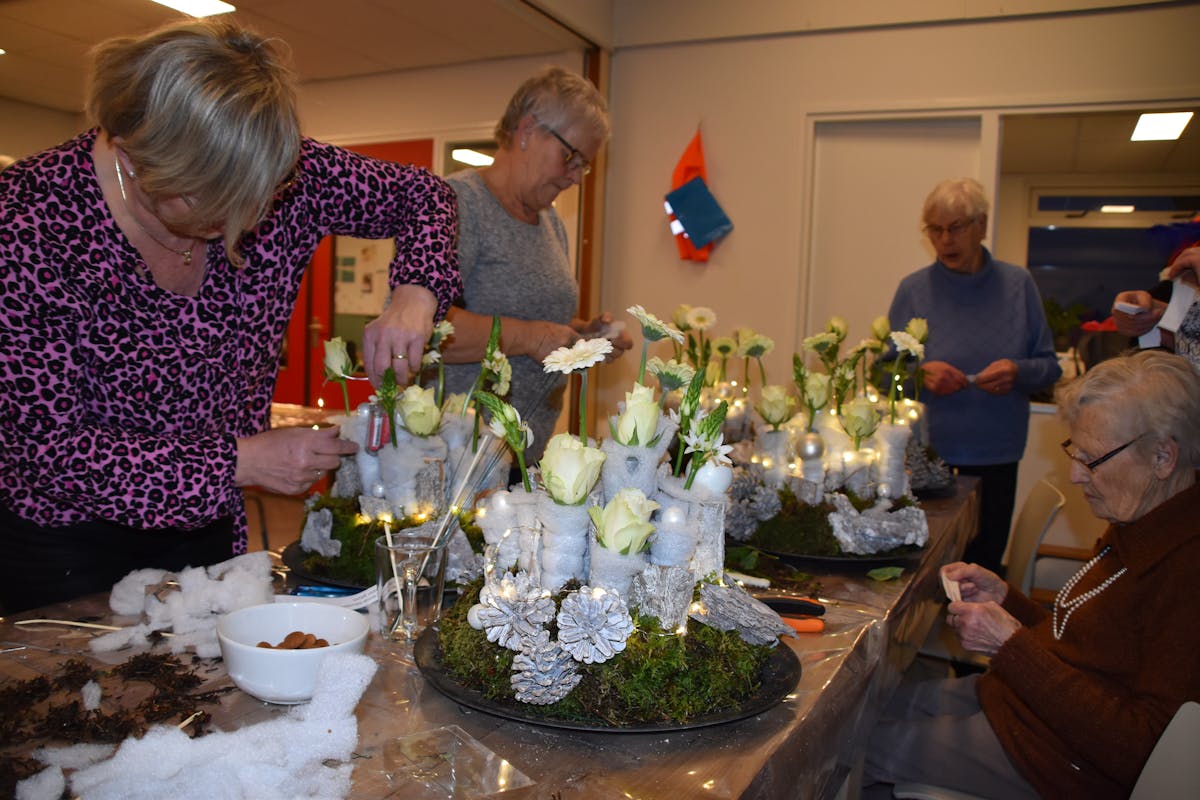 Wat een geslaagde middag, tijdens de koffiemiddag elke 1e donderdag van de maand kon men zich opgeven om een Kerststuk te maken. Onder het genot van een kopje koffie met heerlijke banketstaaf werd er stap gewijs verteld hoe het Kerststuk gemaakt moest worden. De tijd vloog voor bij en het eindresultaat mocht er zeker zijn.