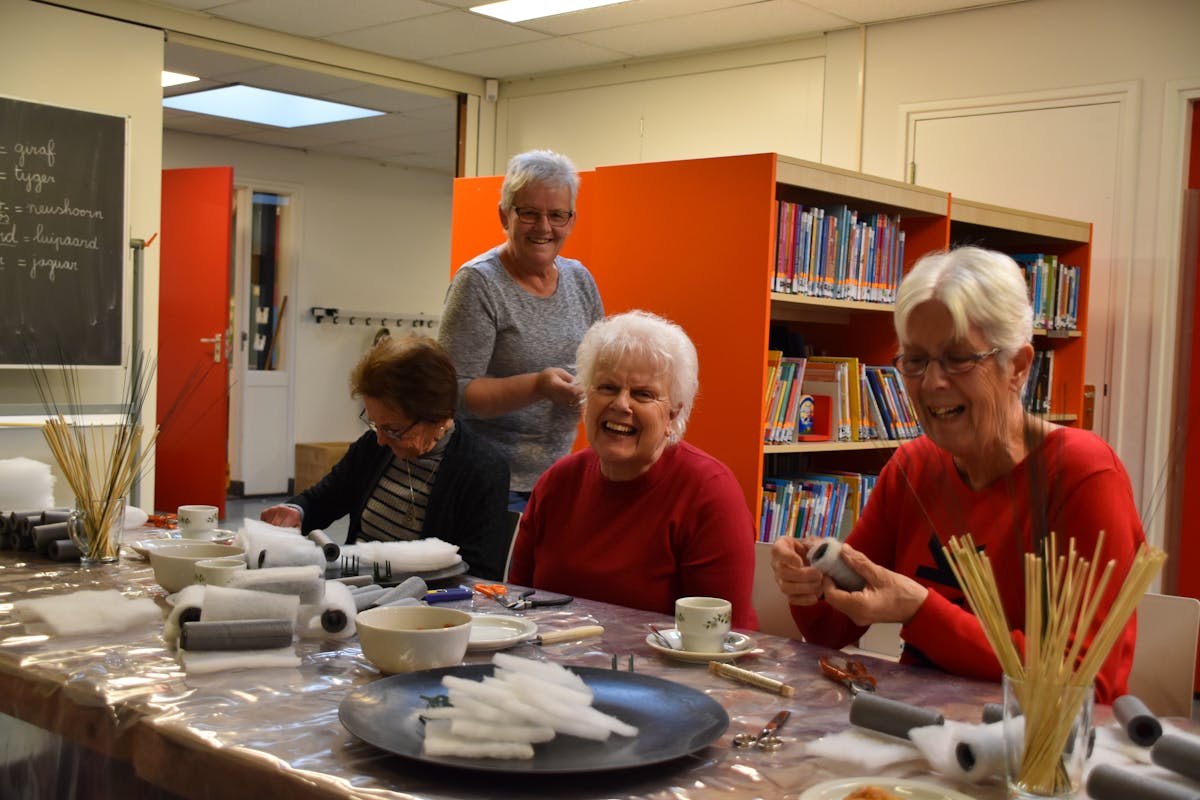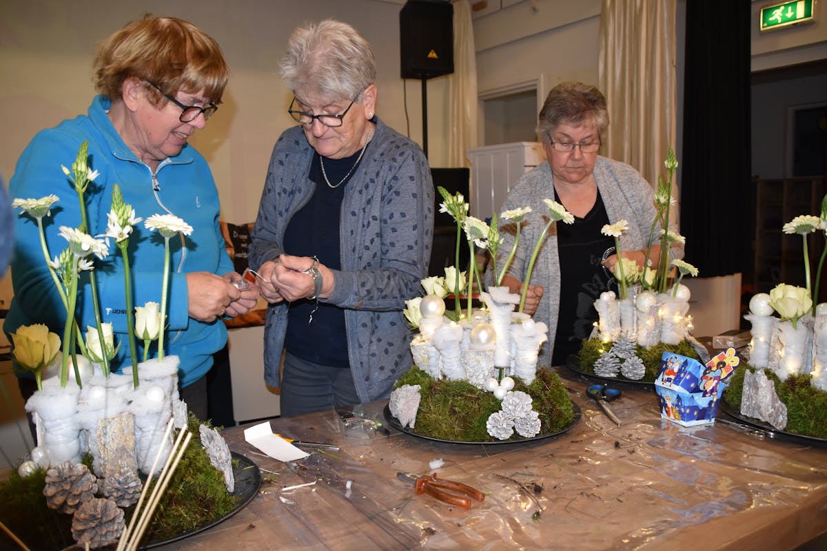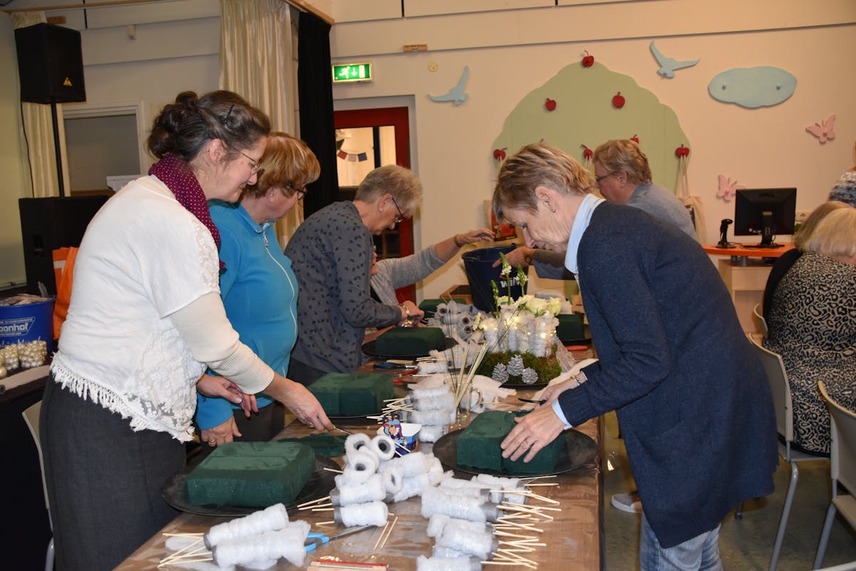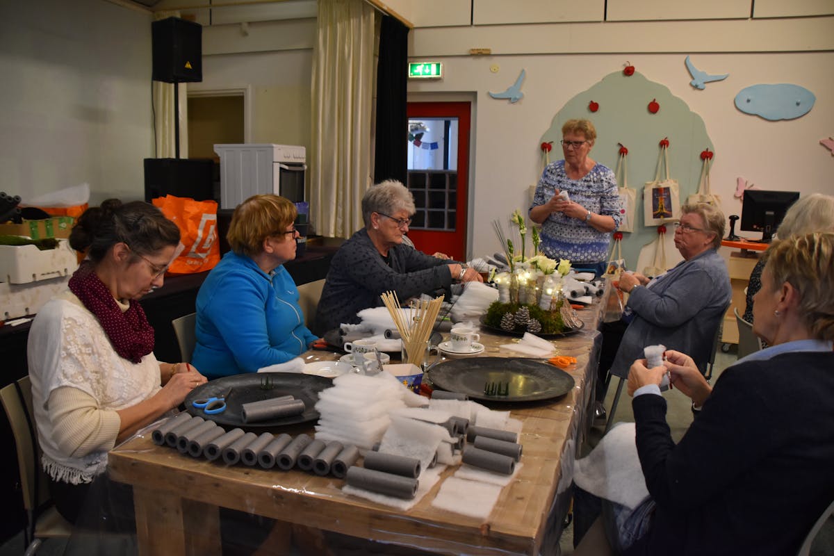 Wat een geslaagde middag, tijdens de koffiemiddag elke 1e donderdag van de maand kon men zich opgeven om een Kerststuk te maken. Onder het genot van een kopje koffie met heerlijke banketstaaf werd er stap gewijs verteld hoe het Kerststuk gemaakt moest worden. De tijd vloog voor bij en het eindresultaat mocht er zeker zijn.