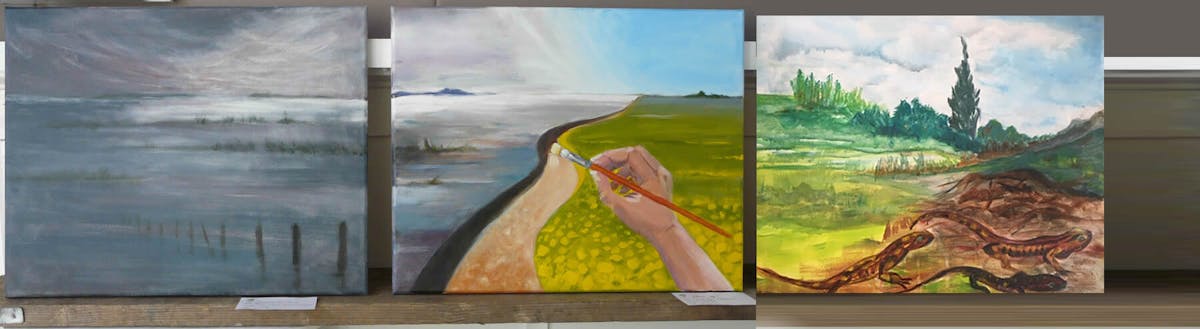 De 'noodkreet' (nou ja) uit een eerdere interne email aan de kunstenaars van de Kunstkring Voorst heeft gewerkt! De groep 'Buitenschilders' werken nu (thuis) verder aan de 7 doeken van hun 'kettingschilderij'.
