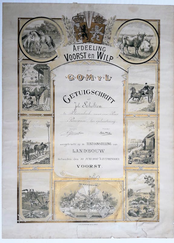 Oudheidkundige Kring Voorst doet onderzoek naar een landbouwtentoonstelling die in 1897 werd gehouden. De organisator was de Afdeeling Voorst-Wilp van de Geldersch Overijsselsche Maatschappij van Landbouw. Plaats van de gebeurtenis was de Zutphenboer. Johannes Scholten uit Klarenbeek won een prijs met een paar pauwen 'ter opluistering'. Wie heeft vroeger dergelijke tentoonstellingen meegemaakt en heeft er nog foto's van of diploma's en medailles?