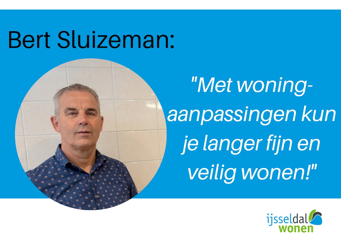 Om langer fijn en veilig in je woning te wonen is een aanpassing aan je woning soms wel prettig. Opzichter Bert Sluizeman: “Helaas ontvangen we nog maar weinig aanvragen voor woningaanpassingen. Ook in een huurwoning is veel mogelijk." We noemen dat 'langer fijn en veilig wonen'. Dat betekent dat je mogelijkheden hebt om je woning levensloopbestendiger te maken. Het gaat om aanpassingen waar je echt gemak van heeft. "Bij een huisbezoek geef ik vaak aan wat er mogelijk is, zoals een in hoogte verstelbare douchekop, een tweede trapleuning of het verwijderen van binnendrempels. Dan hoor je vaak: ‘O, is dat mogelijk? Dat wist ik niet’.