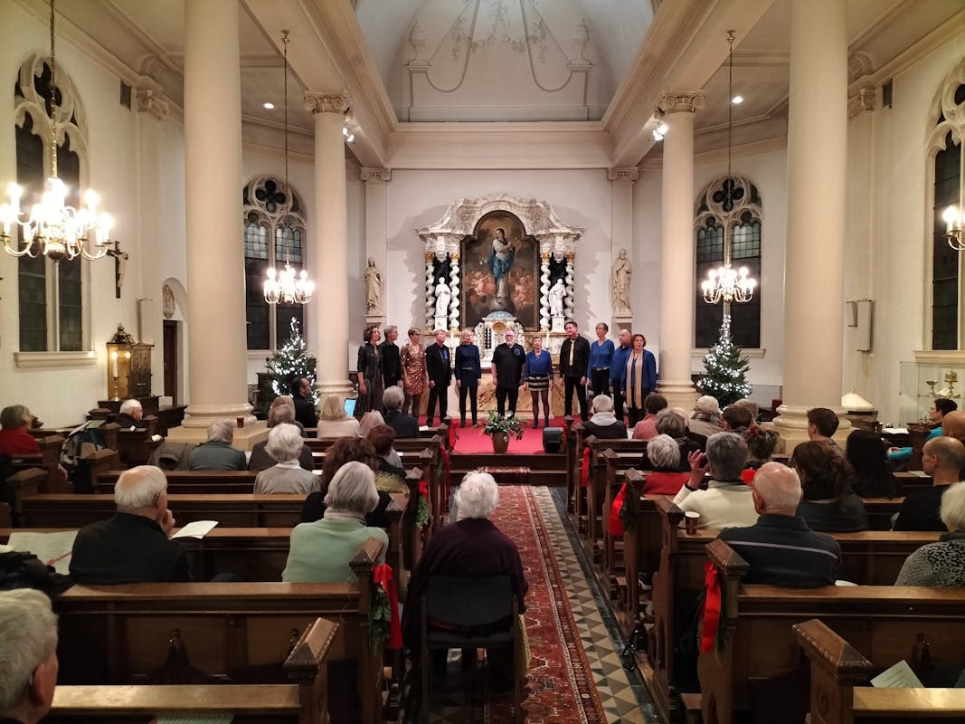 Met een programma vol Kerstarrangementen en ook een aantal andere toepasselijke liederen brachten de 11 zangers, a cappella of hooguit begeleid door piano, hoogstaande zangkunst ten gehore. Soms in kleinere samenstelling, vaak met allemaal, straalde het plezier van de zangers af die moeiteloos konden schakelen tussen klassiek, Ierse folksong, close harmony en pop-art.