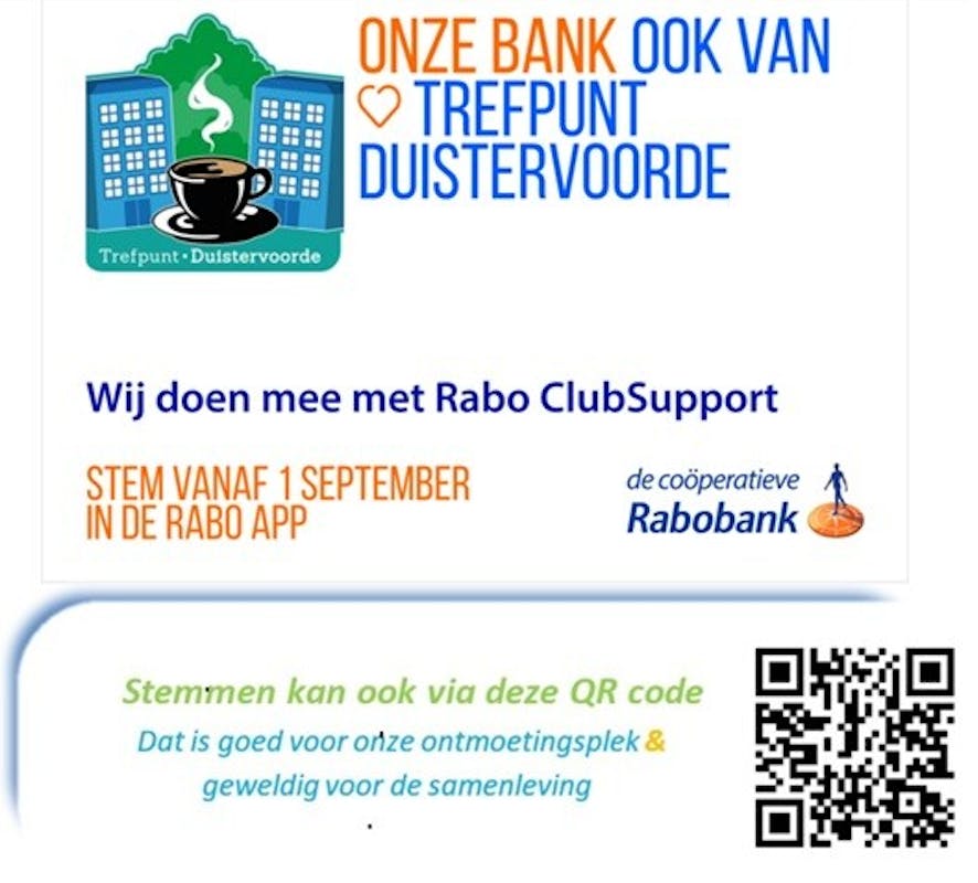 Iedereen met een Rabo-account kan stemmen รณp en vรณรณr Stichting Trefpunt Duistervoorde.