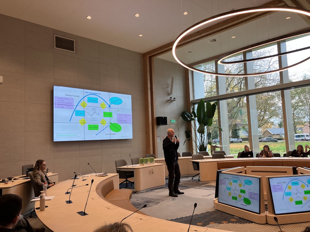 Tijdens deze bijeenkomst zijn de deelnemers meegenomen in een inclusieve samenleving van overvloed en gemeenschapsgevoel. Een samenleving waarin kwaliteiten tellen in plaats van individuele gebreken en waarin de context voedend en inclusief is. Astrid en Mario zijn ingegaan op belangrijke mijlpalen en hindernissen die we onderweg tegenkomen onderweg naar een inclusieve samenleving. Hun oproep is duidelijk: denken vanuit mens en gemeenschap in plaats van cliënt en individu.