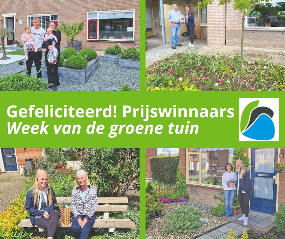 Dit zijn ze dan, de prijswinnaars van onze actie "Week van de groene tuin"! Onze collega's Nynke en Joyce brachten hen onlangs een leuk pakketje.