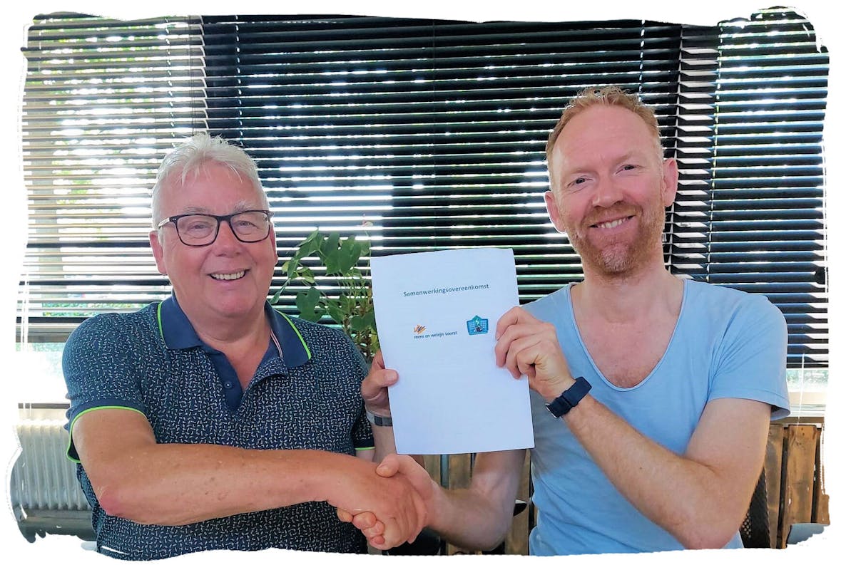 In de praktijk werden een jaar geleden de handen al ineen geslagen, maar nu staat het ook zwart op wit. Met het ondertekenen van een overeenkomst is de samenwerking tussen Trefpunt Duistervoorde en Mens en Welzijn Voorst officieel. Beide organisaties willen graag wat betekenen voor iedereen die behoefte heeft aan ontmoeting en dus zochten de twee elkaar op.