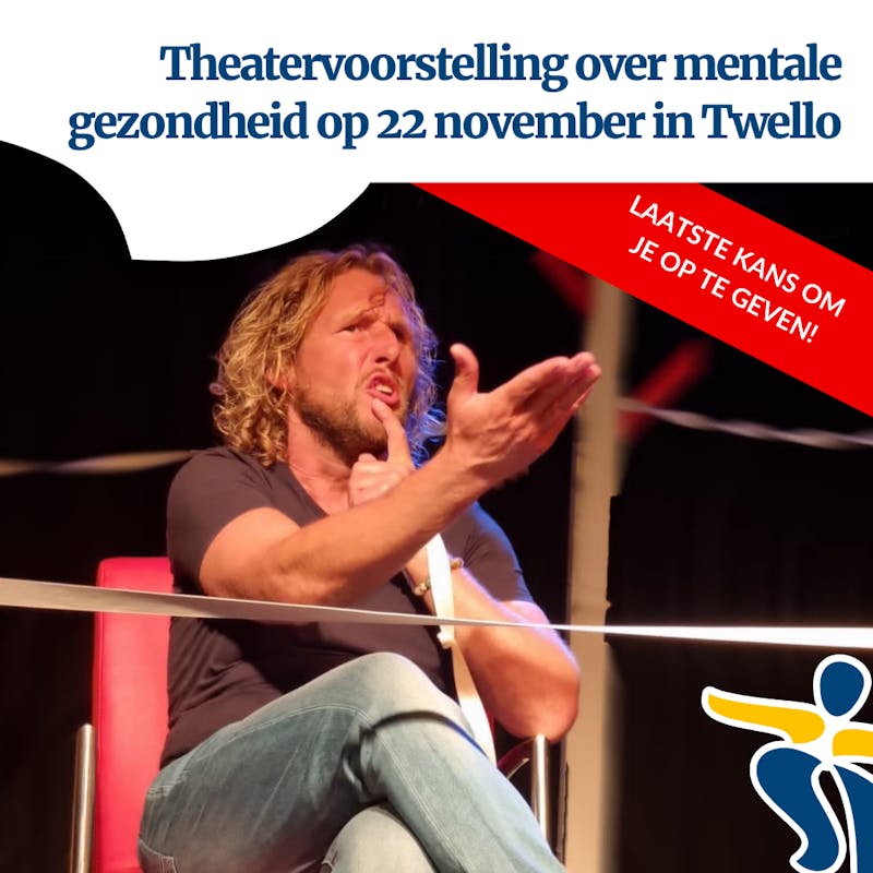 Aanstaande vrijdag is de gratis theatervoorstelling over mentale gezondheid van Johan Stegeman. Het is Jachtlust in Twello. En jij kunt je nog opgeven!