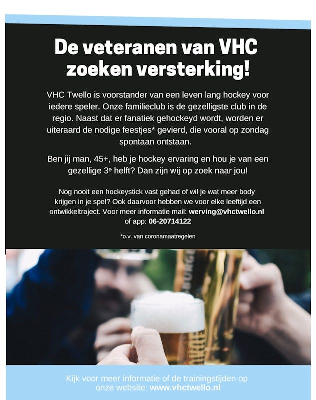 De leukste en gezelligste hockeyclub in de regio is op zoek naar heren voor ons veteranenteam!