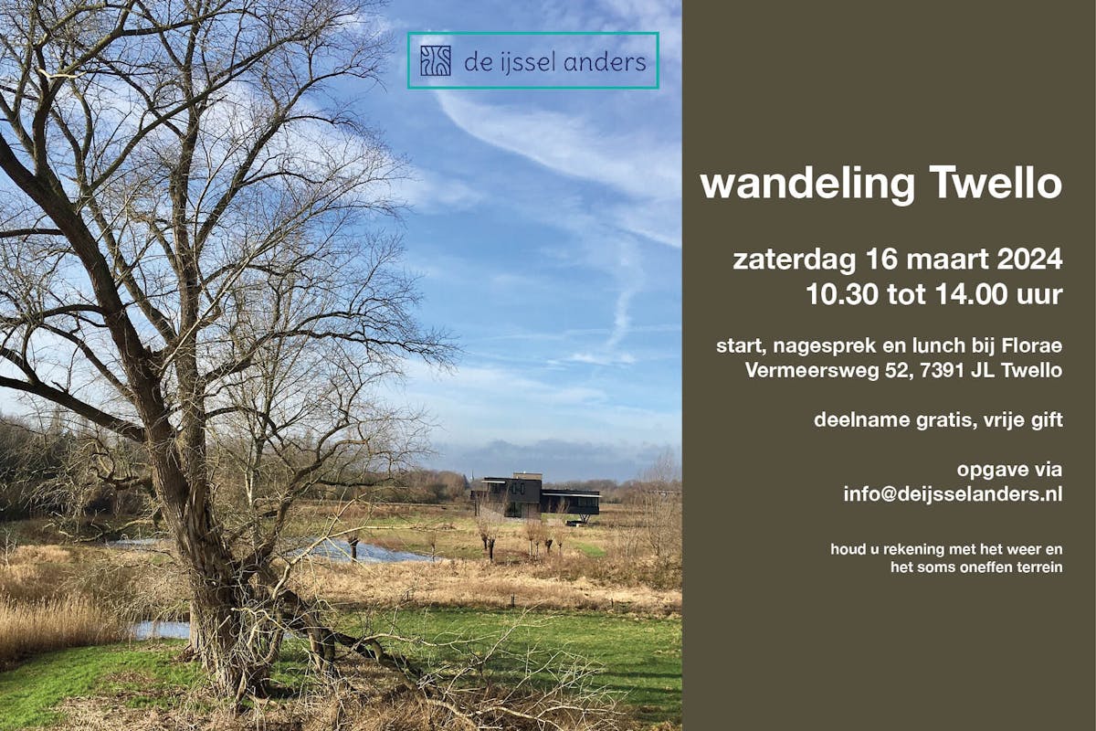 Op zaterdag 16 maart 2024 wandelen we bij Twello. Het gaat o.a. over landgoederen en landbouw. Een wandeling van zo’n 6-7 kilometer. We zorgen ervoor dat een aantal gebiedskenners aanwezig is.