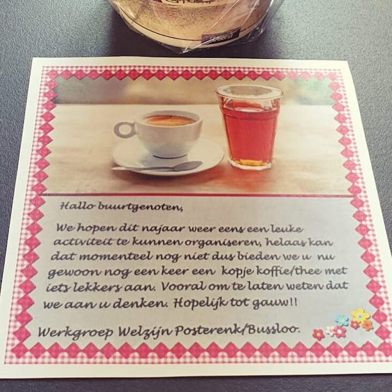 Vandaar dat de leden van deze werkgroep gezellig naar de mensen toe zijn gegaan met een kleine attentie. Deze is mede mogelijk gemaakt door Jumbo Binnendijk Twello