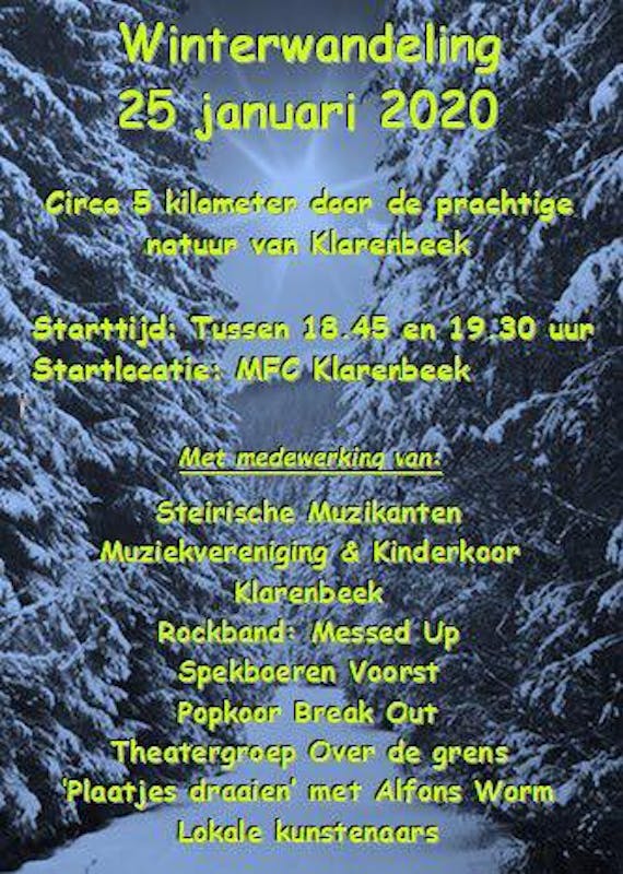 Nog maar een paar weken en dan is het al zover: de Winterwandeling Klarenbeek 2020!